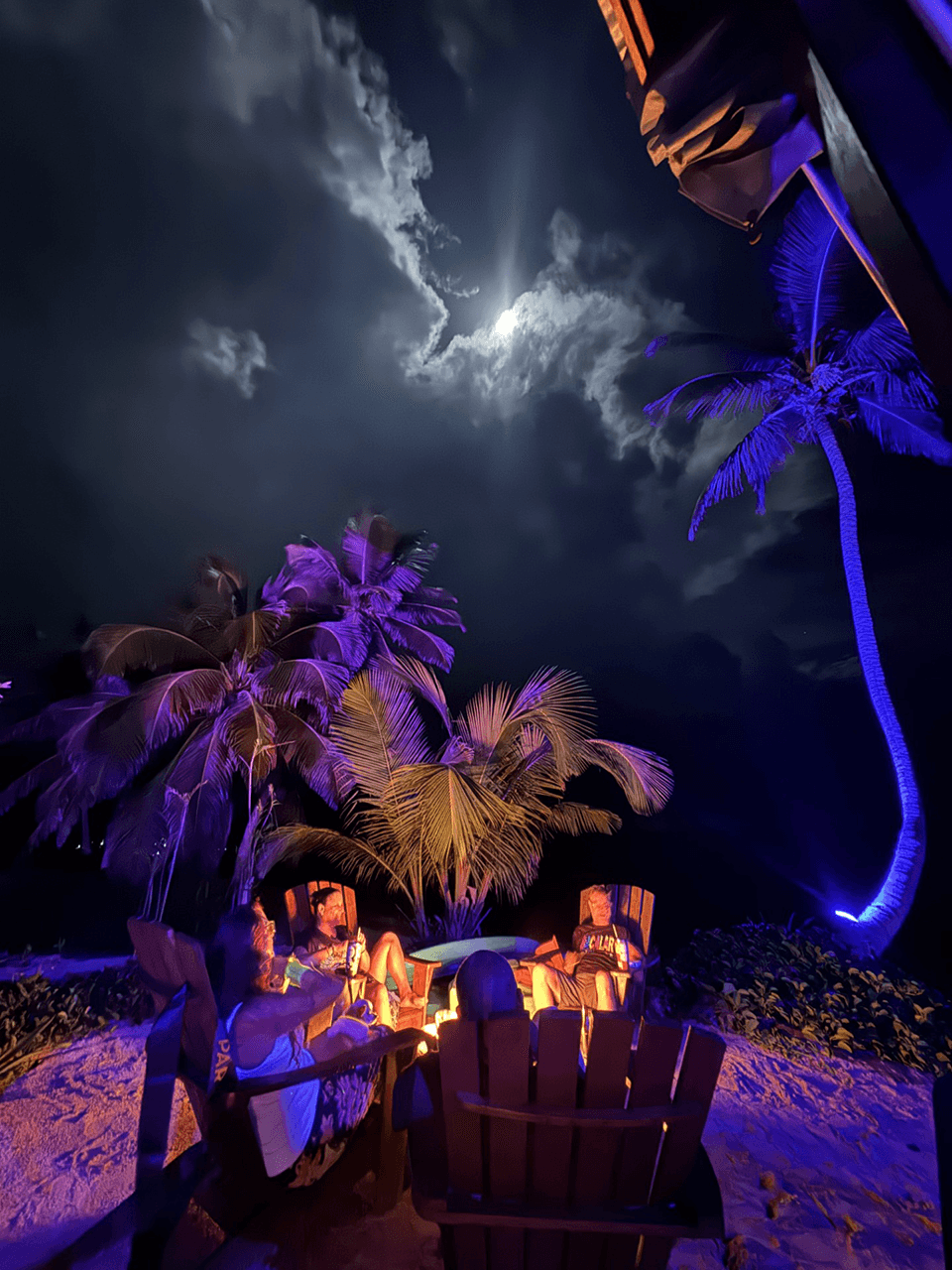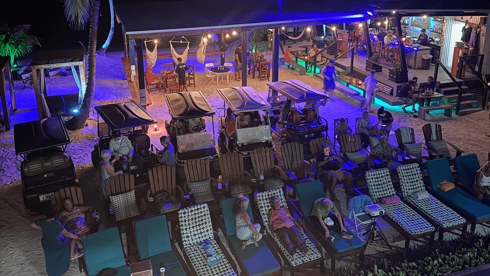 For the movie section: Join us for our golf cart drive-in movie night every Friday at 7 p.m.! We roll out the big screen on the beach, where you can watch a movie under the stars from your golf cart or one of our comfy lounge chairs.